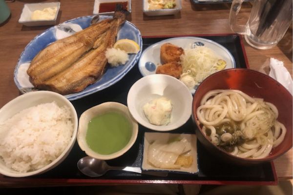 相方はまぐろ丼、自分はほっけ定食にしました。