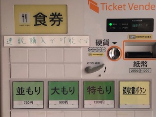 すでに店前には数人が待っていましたが、実は開店前から食券を購入し、番号札順に並ぶシステム。私たちは11番・12番。常連さんが多いようで、手慣れた様子で食券を置いて席を確保していました。