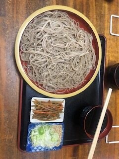 11時半になると一度外に出され、番号順に並び直してから薬味やツユ(温・冷)をセルフで用意します。きんぴらごぼうも一皿ついてきて、これがまた絶品。柔らかくてやさしい味わいで、蕎麦が来る前に感動してしまいました。