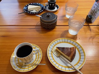 相方はバスクチーズケーキ、私はレアチーズケーキをチョイス。どちらも手作りで、程よい甘さとコーヒーの相性が抜群。時間を忘れるような素敵なカフェタイムになりました。
